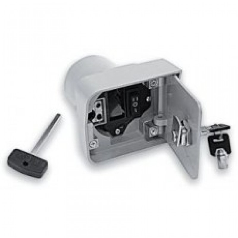 Aluminum box with tubular lock, push button release and electric brake. Recessed.