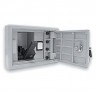 Aluminum box with tubular lock, push button release and electric brake. Recessed.